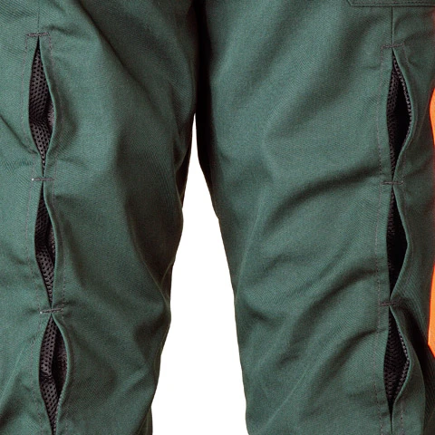Robust brushcutter trousers with breathable impact protection, long ventilation openings on the rear and loops for FS braces. Registered as a patent, the FS leg protection accessory for extreme work conditions can be inserted inside the leg pockets. Washable at 60C.